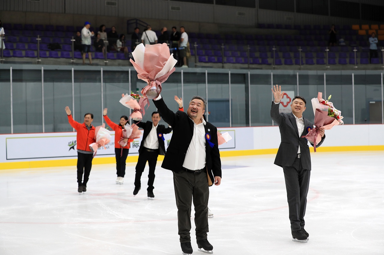 世纪星小学员为庆典带来花滑表演 金博洋及北京队(世纪星)全体花滑运动员为庆典带来精彩的冰上表演。他们分别献上自己所擅长的男子/女子单人滑、双人滑以及冰舞节目,并在最后献上花滑集体表演,为现场的观众带来一场绝美的视觉盛宴。他们的教练——许兆晓老师、付彩姝老师、高海军老师、韩冰老师等“老冰”也出席了庆典,包括正在康复中的双人滑名将张昊,数十年来,他们一直奋战在花滑事业的第一线。